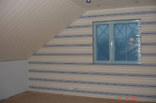 Nu har vi även målat sovrummen och TV-rummet med den slutliga färgen. Det är således bara trappan, de två skrubbarna i övrevåningen och nedrevåningens wc som är omålade. I vårt sovrum och tv-rummet har vi samma färg. Vi har, precis som i resten av huset, målat med Tikkurilas Harmony, här föll valet på H484 "Mulperi".